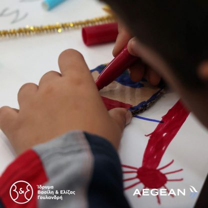 Με τη βοήθεια της AEGEAN, μέλη του Τμήματος Εκπαίδευσης του Ιδρύματος Β&Ε Γουλανδρή ταξίδεψαν σε Ιδρύματα και ΜΚΟ παιδικής φροντίδας σε όλη τη χώρα, από την Αλεξανδρούπολη και την Κρήτη μέχρι την Κέρκυρα και τη Ρόδο και, με τη χρήση των ειδικών μουσειοσκευών του Μουσείου, υλοποίησαν διαφορετικά εκπαιδευτικά προγράμματα. Τα παιδιά έλαβαν δώρα και έφτιαξαν στολίδια και Χριστουγεννιάτικες κατασκευές εμπνευσμένες από τη Συλλογή έργων τέχνης του Ιδρύματος.
