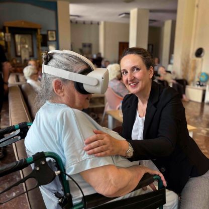 Μαζί με την διευθύντρια του γηροκομείου Κωνσταντίνα Καρύδη, όλοι οι εργαζόμενοι είχαν επίσης την ευκαιρία να δοκιμάσουν τα γυαλιά, να ενημερωθούν για τη φιλοσοφία πίσω από τη δράση και για το πώς μπορούν και οι ίδιοι να χρησιμοποιούν την τέχνη για την κινητοποίηση των ηλικιωμένων. Φεύγοντας, δώσαμε ραντεβού για μια νέα επίσκεψη στο άμεσο μέλλον.