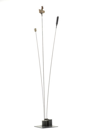 Αρχικά, τα «Σινιάλα» φέρουν στοιχεία της καθημερινότητας, ενώ από τις αρχές της δεκαετίας του 1960 και μετά δημιουργεί τα πρώτα «Φωτεινά σινιάλα», τα οποία φέρουν φώτα και φανάρια. Σταδιακά, τα «Σινιάλα» αλλάζουν μορφή αποκτώντας μεγαλύτερη ευελιξία. Πολλές φορές τοποθετεί στην κορυφή τους πυροτεχνήματα, με τα οποία πραγματοποιεί δρώμενα σε πλατείες του Παρισιού, ενώ άλλοτε τα κοσμεί με αντικείμενα που βρίσκει τυχαία, τα λεγόμενα «objets trouvés», τα οποία λικνίζονται με τον άνεμο και, καθώς χτυπούν μεταξύ τους, παράγουν μοναδικούς ήχους δίνοντας την αίσθηση παλλόμενων χορδών.