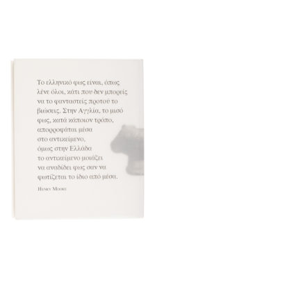 Σε μια αποκαλυπτική έκθεση που εγκαινιάστηκε το Σάββατο, ο μεγαλύτερος γλύπτης του 20ού αιώνα, ο Henry Moore, ανοίγει φέτος τον διάλογο με την εποχή του Φειδία, «υπό το φως της Ελλάδος», στο Μουσείο Σύγχρονης Τέχνης της 'Aνδρου. Έκθεση που συνεχίζει μια δεκαπενταετή παράδοση κορυφαίων διεθνών εικαστικών εκδηλώσεων του Ιδρύματος Βασίλη και Ελίζας Γουλανδρή. […] Τα έργα που επελέγησαν και η παραβολή τους στον κατάλογο-ντοκουμέντο με έργα της αρχαίας κλασικής γλυπτικής αποκαλύπτουν και τεκμηριώνουν μια σχέση ζωής, αμφίθυμη, γεμάτη πάθος, που πέρασε όλα τα στάδια. […]