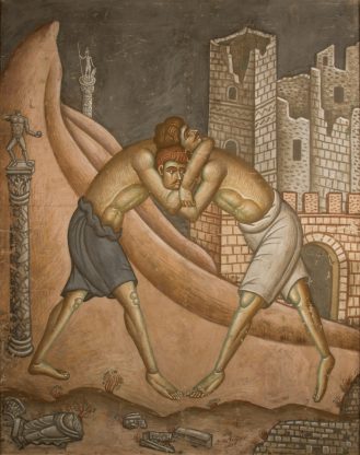 Στην έκθεση συμμετέχουν με έργα τους οι καλλιτέχνες Ιωάννης Βαμπούλης, Πέτρος Βαμπούλης, Σπύρος Βασιλείου, Φώτης Βάρθης, Νίκος Βέλμος, Κωνσταντίνος Γεωργακόπουλος, Γεώργιος Γλιάτας, Στέφανος Δασκαλάκης, Διαμαντής Διαμαντόπουλος, Νίκος Εγγονόπουλος, Μάρκος Καμπάνης, Ανδρέας Κοντέλλης, Φώτης Κόντογλου, Γεώργιος Κόρδης, Ράλλης Κοψίδης, Αλέκος Κυραρίνης, Αλέκος Λεβίδης, Κλέαρχος Λουκόπουλος, Νεκτάριος Μαμάης, Τάσος Μαντζαβίνος, Ιωάννης Μητράκας, Γιάννης Μόραλης, Νίκος Μόσχος, Εμμανουήλ Μπιτσάκης, Χρήστος Μποκόρος, Γιάννης Παπαδέλης, Σπύρος Παπαλουκάς, Κωνσταντίνος Παπαμιχαλόπουλος, Κώστας Παπανικολάου, Σπύρος Παπανικολάου, Γιώργος Ρόρρης, Εδουάρδος Σακαγιάν, Παύλος Σάμιος, π. Σταμάτης Σκλήρης, Σωτήρης Σόρογκας, Γιάννης Τσαρούχης, Στέλιος Φαϊτάκης, Φίκος, Νικόλαος Χούτος, Γιώργος Χοχλιδάκης και Klaus Vrieslander.