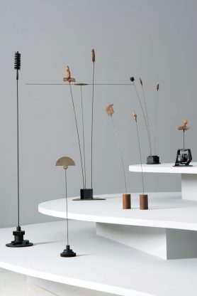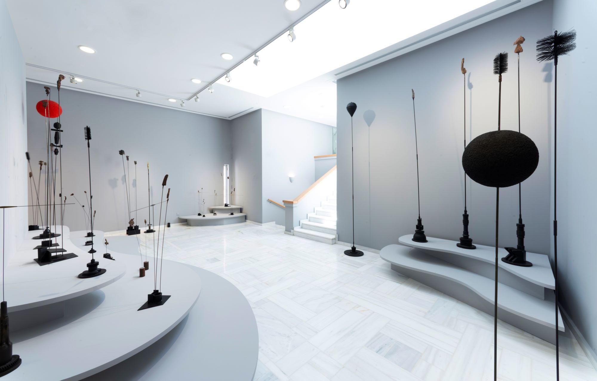 Στόχος του Ιδρύματος είναι να προβάλει μια ολοκληρωμένη πλευρά της καλλιτεχνικής διαδρομής του, μάλλον παραγνωρισμένη: τα νεανικά έργα του, αποκαλυπτικά των πρώτων επιρροών του αλλά και της ικανότητάς του να απεγκλωβίζεται από την κατάρτιση του αυτοδίδακτου και να διαπρέπει. Τα Λουλούδια και τα Είδωλα, τα οποία αποτέλεσαν νέες οπτικές για την πανίδα και τη χλωρίδα μέσα από το πρίσμα του μετάλλου. Τους Εσωτερικούς χώρους, τα Μαγνητικά κενά και τις Σφαίρες, που τον οδήγησαν να συνεχίσει την εξερεύνηση της ύλης. Τα Καντράν και τα Ηλεκτρονικά ανάγλυφα, έργα παράδοξα που υπογραμμίζουν τη μόνιμη παρουσία της τεχνολογίας στη ζωή μας, αλλά και το γεγονός ότι κάθε στοιχείο της καθημερινότητας μπορεί να κρύβει εικαστική ομορφιά που δεν υποψιαζόμαστε. Τις Σπείρες, ένα μεθυστικό ταξίδι στα αισθητικά μυστήρια της γεωμετρίας, και τέλος τα λιγότερο γνωστά Ερωτικά του, εμβλήματα της ηχηρής επιστροφής των σωμάτων στη δουλειά του. Σε αυτά τα πρωτοφανούς ποικιλίας έργα, τόσο ως προς τα υλικά και τη σύλληψη όσο και ως προς τον συμβολισμό τους, προστίθενται τα εμβληματικά Σινιάλα, που εμφανίστηκαν το 1955 και έγιναν ένα από τα πιο αναγνωρίσιμα σύνολα γλυπτών του 20ού αιώνα.