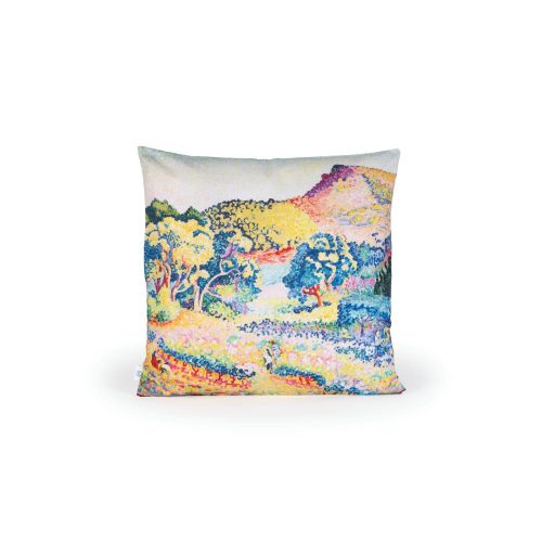 Χειροποίητη μαξιλαροθήκη από 97% βαμβάκι, με το έργο του Henri-Edmond Cross «Τοπίο με το Καπ Νεγκρ», 1906, από την έκθεση «Από τον Monet στον Warhol: Τρεις γενιές, μία συλλογή, ένα ταξίδι στην εξέλιξη της Μοντέρνας Τέχνης» του Μουσείου του Ιδρύματος Βασίλη & Ελίζας Γουλανδρή στην Αθήνα. Κατασκευάζεται στην Ελλάδα από την Bleecker & Love.