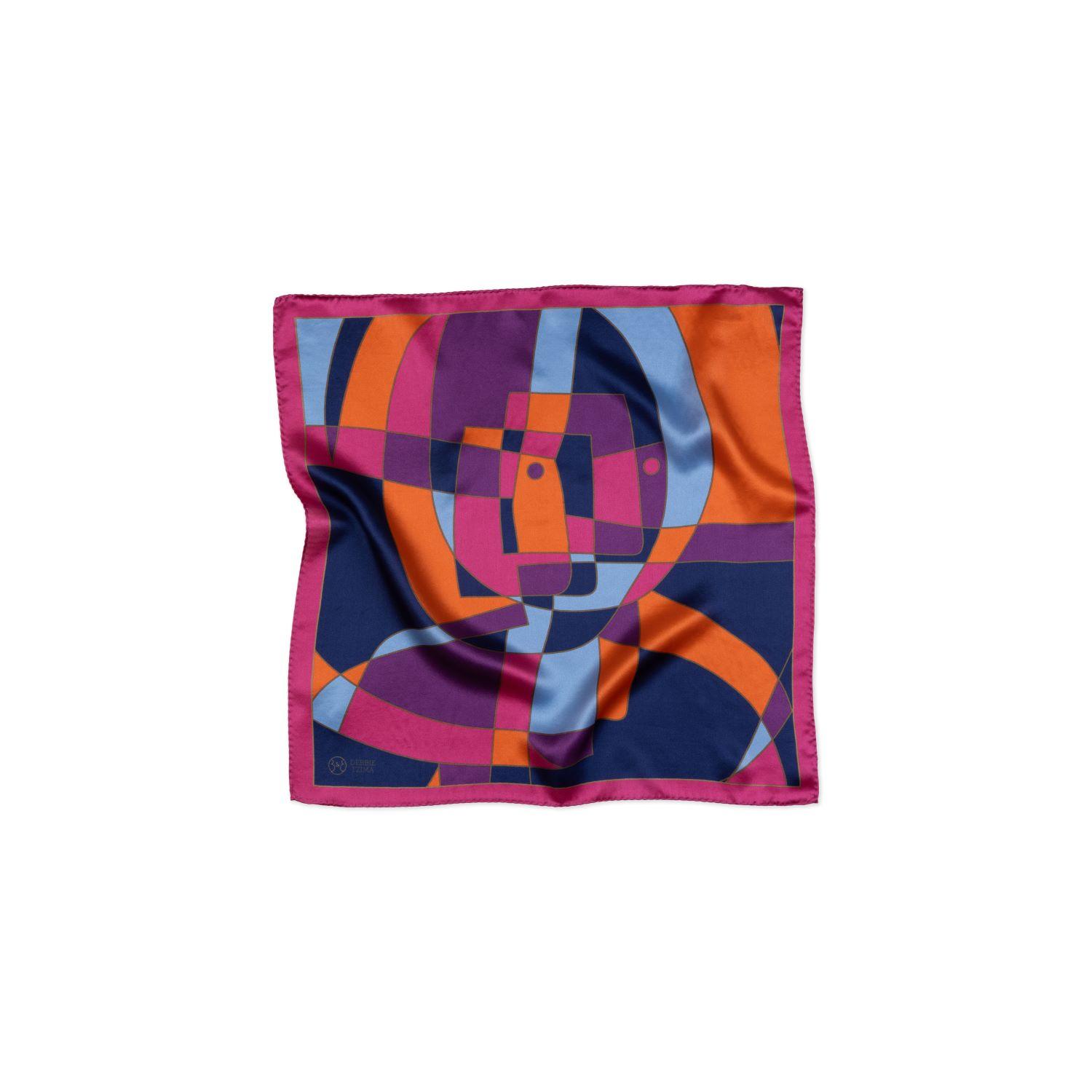Μαντήλι από 100% ελληνικό μετάξι Σουφλίου, με σχέδιο εμπνευσμένο από το έργο του Paul Klee «Δυναμική κεφαλιού», 1934, της Συλλογής του Ιδρύματος Βασίλη & Ελίζας Γουλανδρή. Σχεδιάζεται από την Debbie Tzima αποκλειστικά για το Ίδρυμα Βασίλη & Ελίζας Γουλανδρή.