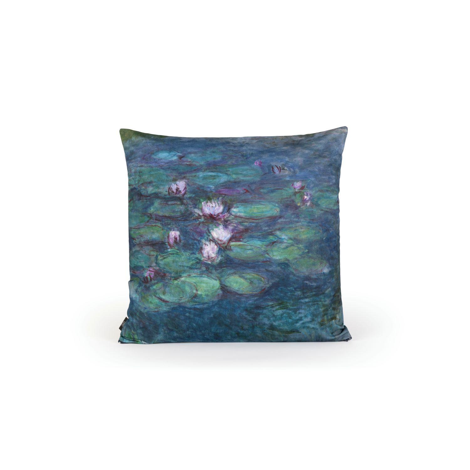 Χειροποίητη μαξιλαροθήκη από 97% βαμβάκι, με το έργο του Claude Monet «Νούφαρα», 1914 περίπου, από την έκθεση «Από τον Monet στον Warhol: Τρεις γενιές, μία συλλογή, ένα ταξίδι στην εξέλιξη της Μοντέρνας Τέχνης» του Μουσείου του Ιδρύματος Βασίλη & Ελίζας Γουλανδρή στην Αθήνα. Κατασκευάζεται στην Ελλάδα από την Bleecker & Love.