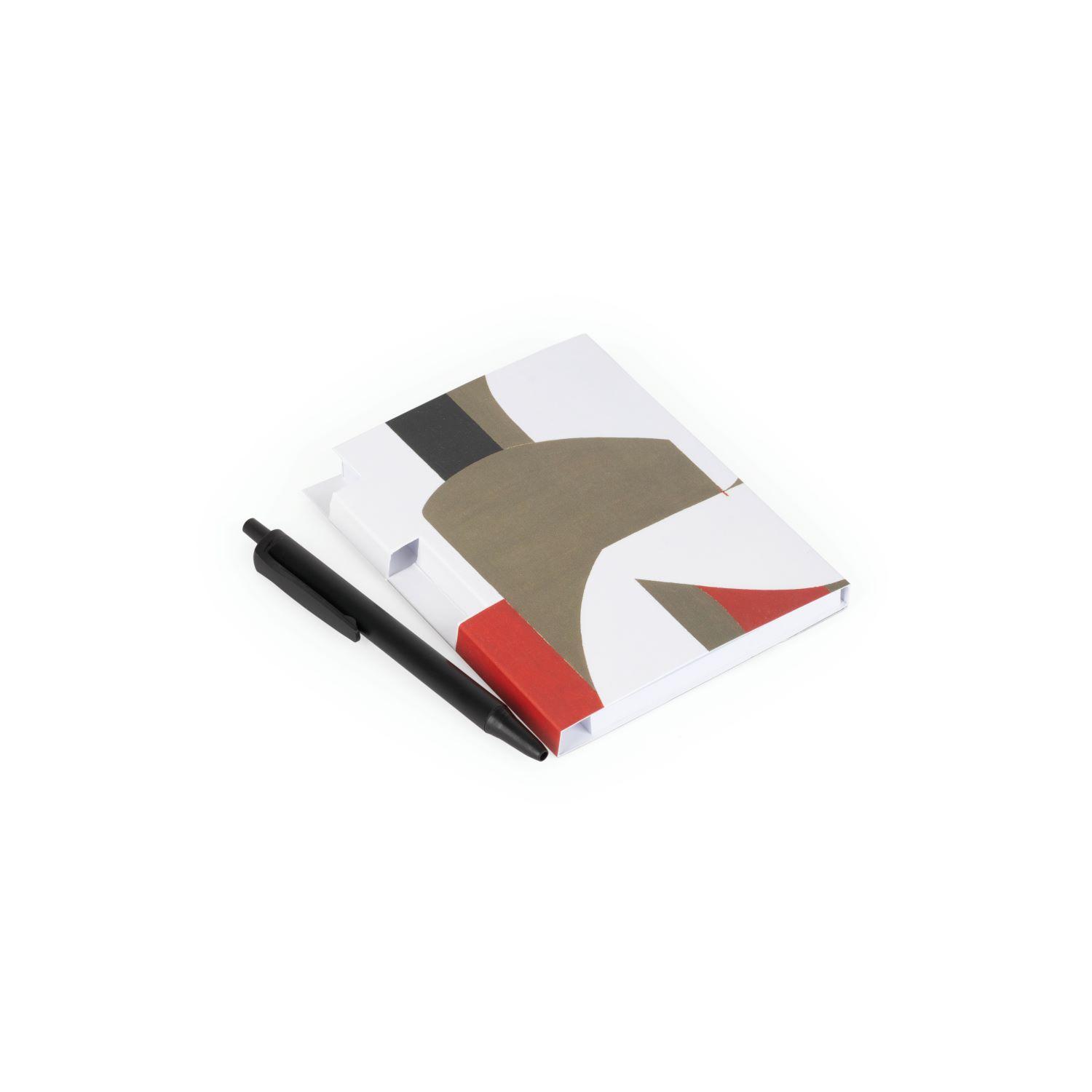 Μπλοκ με 60 λευκά φύλλα, μαγνητικό κλείσιμο και στιλό. Εξώφυλλο με λεπτομέρεια του έργου του Γιάννη Μόραλη «Ερωτικό», 1977, από τη Συλλογή του Ιδρύματος Βασίλη & Ελίζας Γουλανδρή. Παράγεται στην Ελλάδα αποκλειστικά για το Ίδρυμα Βασίλη & Ελίζας Γουλανδρή.