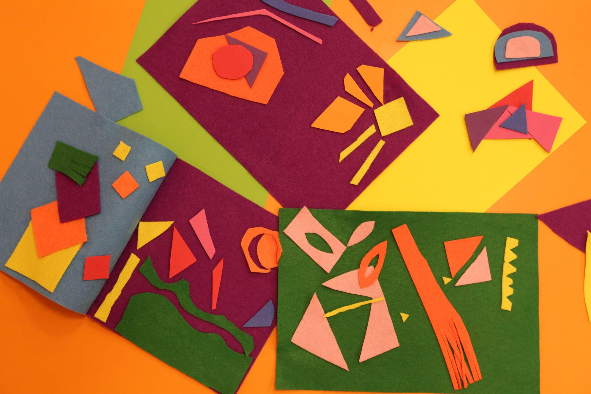 Children use their imagination to discover their own perspective so that they can then depict their own, unique story in a collage book.
