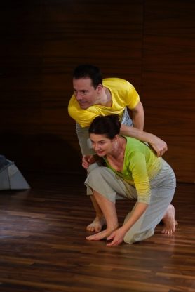 AMiNiMA is a visual and musical poem that combines song, rhythm and dance movement. Two musicians question what makes us human and our close link to nature. The body games, sounds and materials resonate with the sensory and essential state of early childhood. By opening the doors of perception to the imaginary, music emerges from movement, sound and voice from gesture.