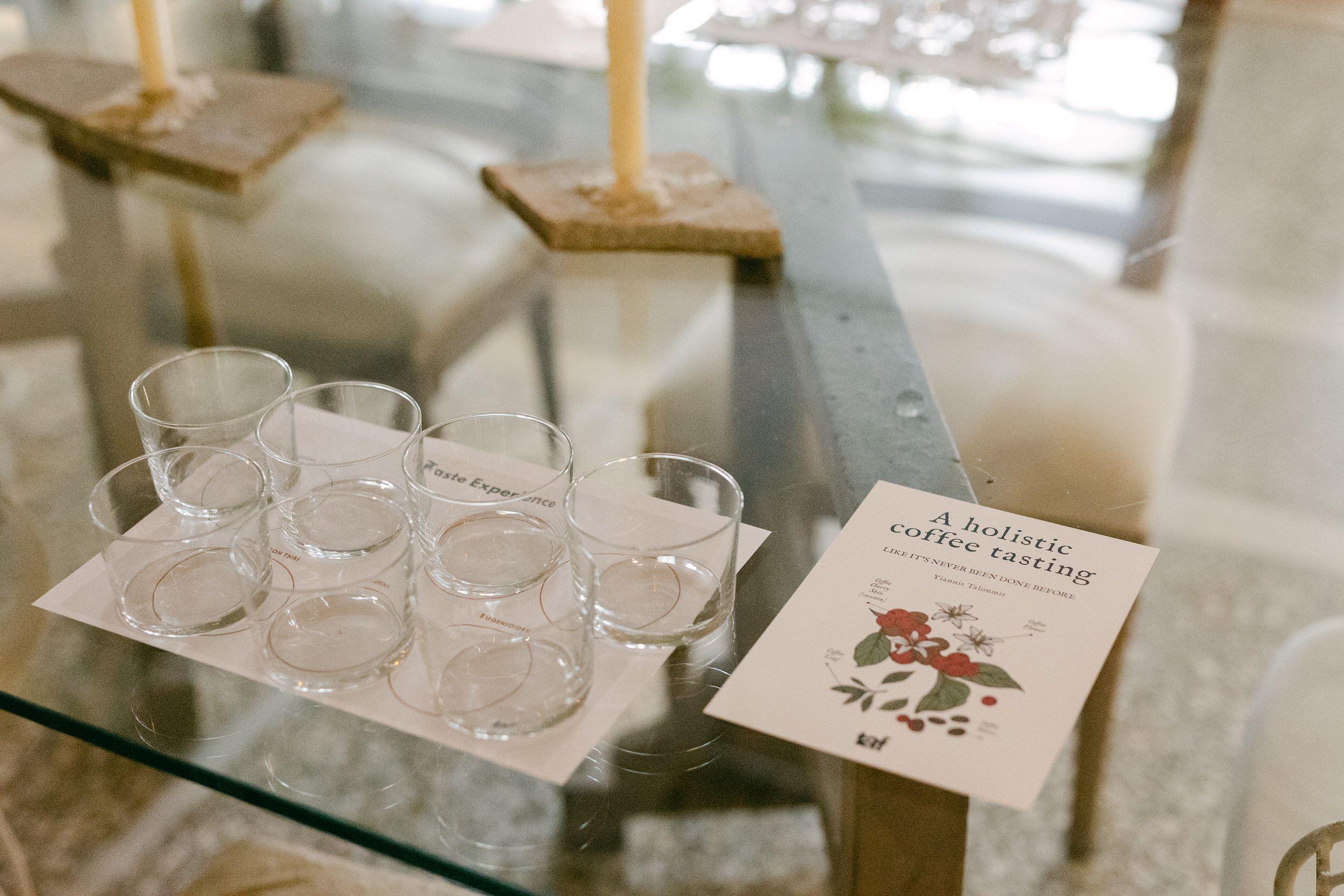 This unique tasting experience unfolds through different stages, guided by expert coffee master Yiannis Taloumis. We begin with the presentation of the coffee plant’s leaves and then discover the husk of the ripe cherry. The following stages focus on the coffee bean itself, giving us the chance to savour Taf’s exceptional coffees and compare characteristics that stimulate different points of our palate. Juxtaposing varieties from different terroirs takes us beyond the limits of the usual perceived complexity of coffee, initiating us into the deeper dimensions of its mindful enjoyment.