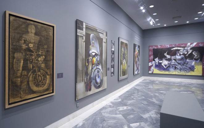 - Violence continued to dominate his work even beyond this dark period, through the depiction of motorbikes, accidents and landscapes altered by human activity.
