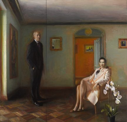 The deep bond which connected Rorris to the couple, continued even after the death of Basil, in 1994, and of Elise, in 2000. In 2017, with the opening of the Athens museum approaching, Rorris was commissioned the difficult task of painting a portrait of the couple. It took seven months for the completion of this exciting challenge. Thanks to the perspicacity of his gaze, this portrait was not just an honorary tribute to the two people he considered his patrons all these years; it evolved into an arrangement of the influences of all the teachers who inspired him throughout his artistic career.