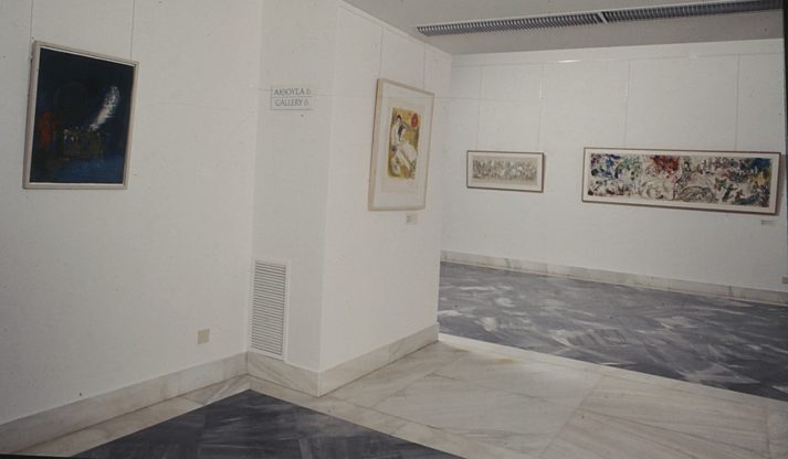 Not, of course, an in-depth knowledge of the work of the artist, but certainly an acquaintance with the broad subject of book illustration, something which assuredly contains the keys to the interpretation of his work as a whole. […] It is of consequence the moment it touches upon a particular activity in the artistic life of Marc Chagall and explains why the natural way that Chagall works with form and colour resembles that of the naive artists, without, nevertheless, the artist being naive himself. […] In concluding this article […] mention must be made of the liveliness of this attractive museum in periods outside those of the opening of an exhibition. Personally, and perhaps even more than the exhibition itself, I was glad for the visitors last week in Andros, the young people filling the galleries, buying posters, and examining the postcards and catalogue. I do not know whether the Museum of Contemporary Art established or created a museum-going public on the island itself, but it has become an integral part of Andros over these years, and this is clearly evident from the kinds of people it brings together in its galleries.