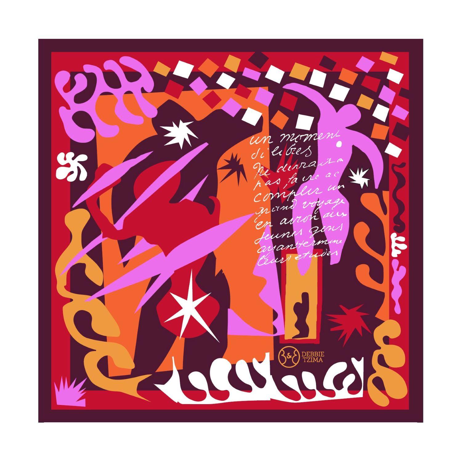 Scarf made of 100% Greek Soufli silk, inspired by works by Henri Matisse included in the album "Jazz", 1947. Designed exclusively for the Basil & Elise Goulandris Foundation by Debbie Tzima.