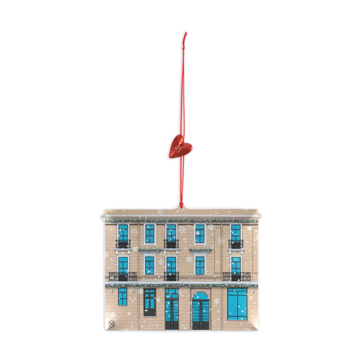 Aluminium christmas ornament featuring the Museum of the Basil & Elise Goulandris Foundation in Athens.