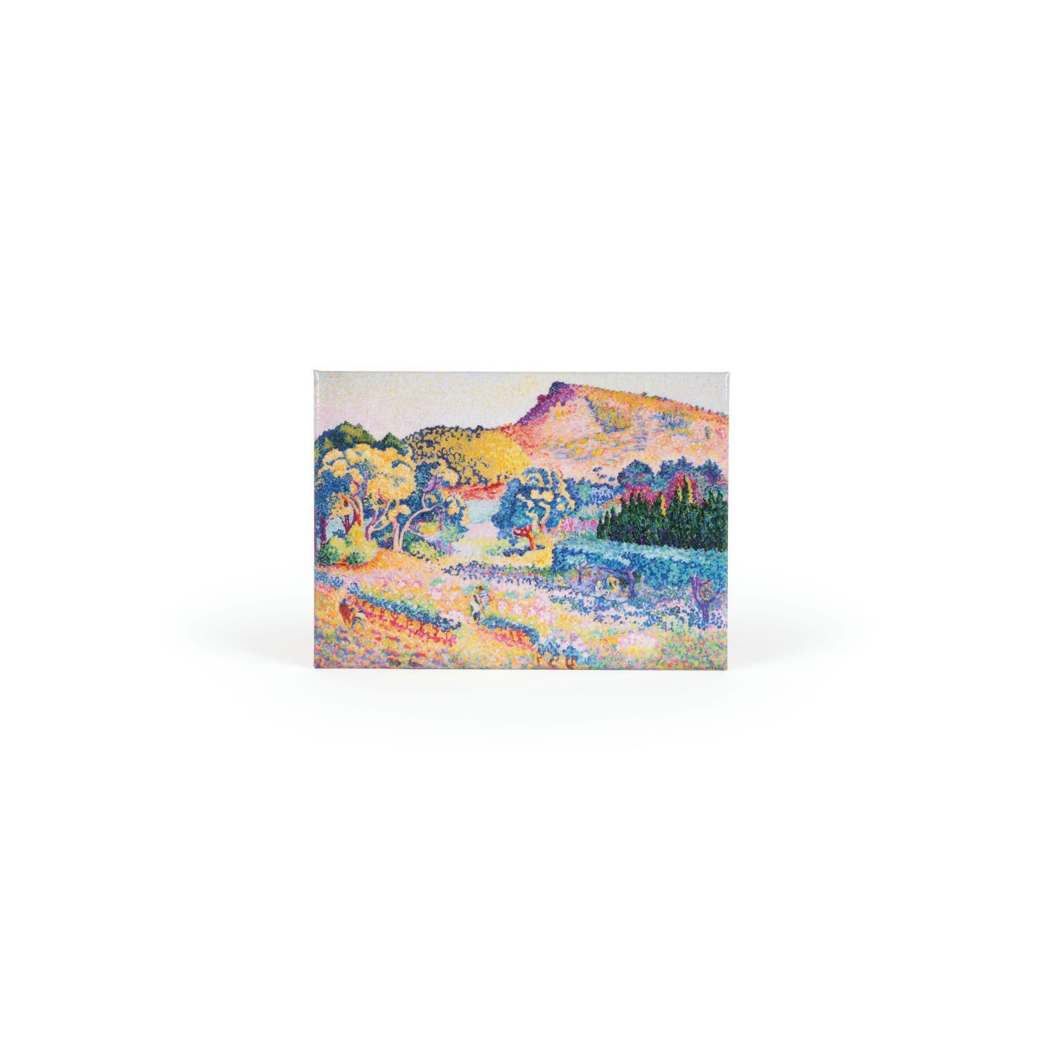 Metal refrigerator magnet featuring Henri-Edmond Cross' "Landscape with Cap Nègre", 1906, from the exhibition "From Monet to Warhol: Three generations, one collection, a journey through the evolution of Modern Art" held at the Museum of the Basil & Elise Goulandris Foundation in Athens. Produced in Greece exclusively for the Basil & Elise Goulandris Foundation.